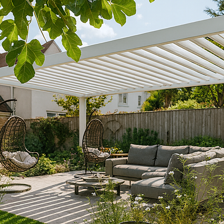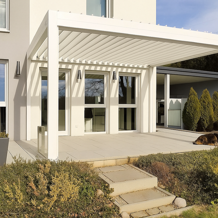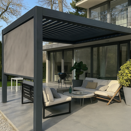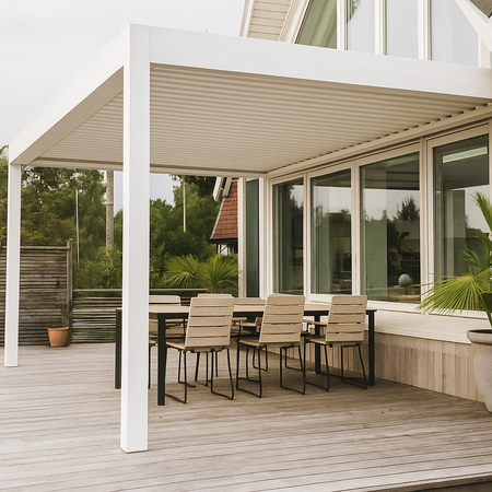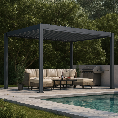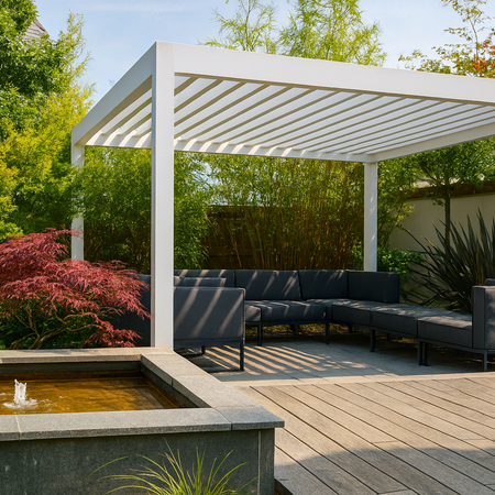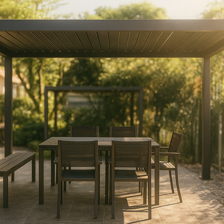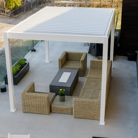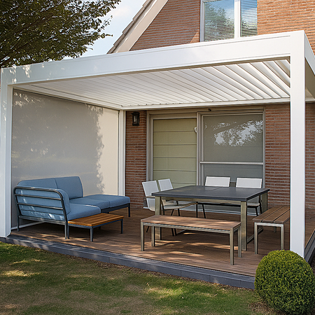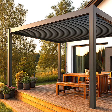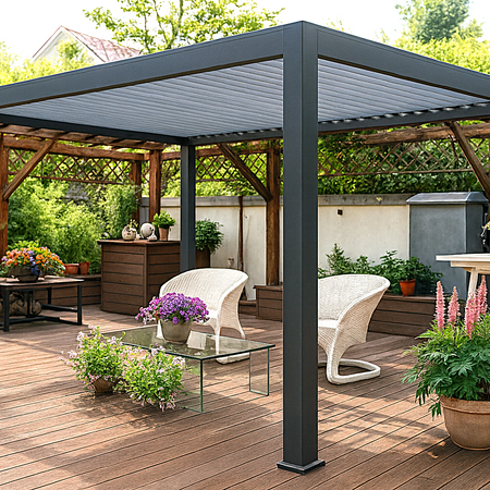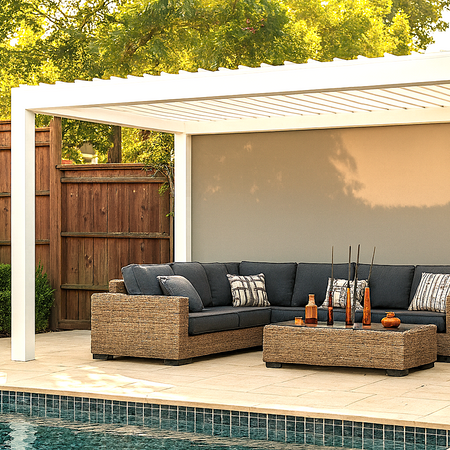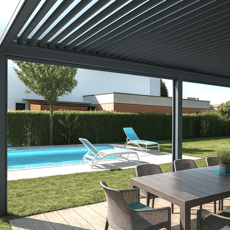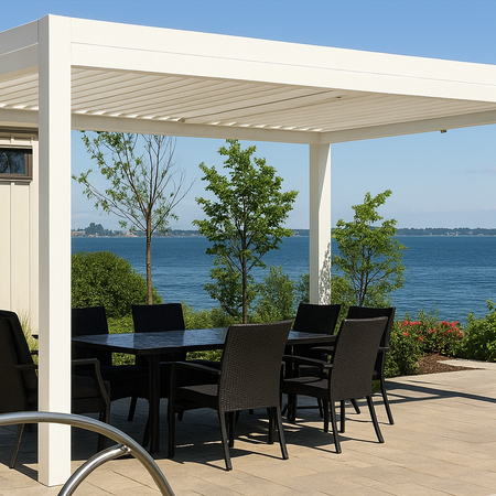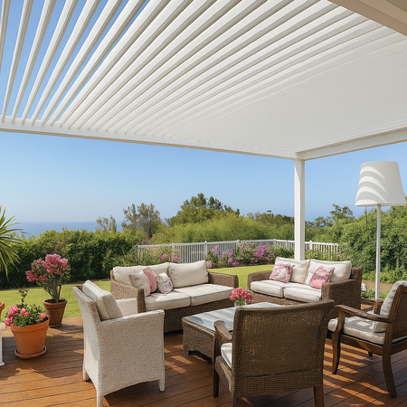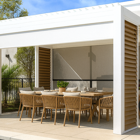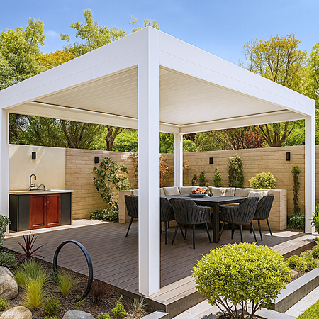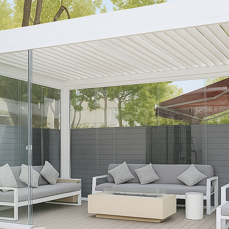 Our modern pergolas and precision-engineered louvered roof systems are crafted entirely from premium-grade aluminum, designed to invite light and airflow when open and to seal completely when closed — delivering year-round comfort and seamless outdoor living.