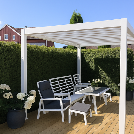 Your pergola must be installed on a solid, stable surface to ensure proper anchoring and long-term durability. Suitable foundations include a concrete slab, wooden deck, or any level, reinforced surface that can securely support the structure. Soft or loose ground (like grass, soil, or sand) is not recommended unless properly reinforced with footings or concrete piers.