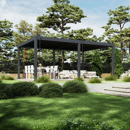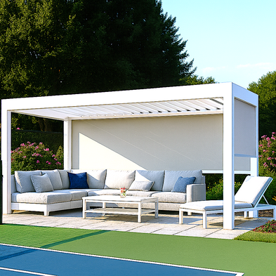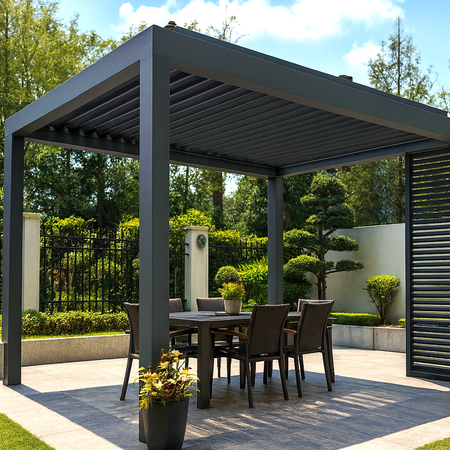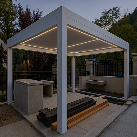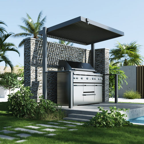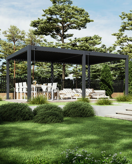 Every detail—from its reinforced aluminum frame to the use of premium-grade materials—is meticulously crafted to ensure superior load-bearing capacity, long-term weather resistance, and minimal maintenance. This is not merely a pergola, but a bold statement of enduring strength.