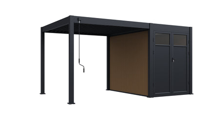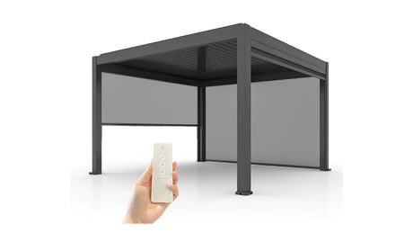 Elegantly compact yet engineered for strength, the APP pergola is a seamless fusion of refined durability and architectural grace. Featuring aluminum louvers that can be adjusted both manually and by remote control, the system allows the roof to open and close at the touch of a button—effortlessly merging innovation with everyday comfort. But this is more than convenience; it's an experience that brings the rhythm of nature into your hands.