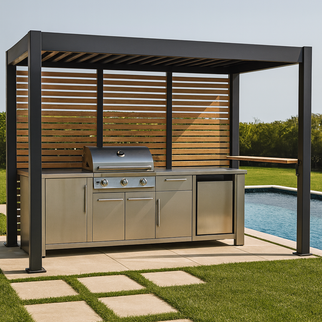 The Comfola Aluminum Grill Gazebo is the ultimate solution for creating a stylish and functional outdoor cooking space. Designed with a modern aluminum frame, this gazebo provides shade, protection, and organization for your BBQ and outdoor kitchen setup. Its durable construction ensures year-round performance, while the open-air design allows for proper ventilation and a comfortable cooking experience.